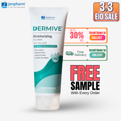 Dermive Moisturizing Face Wash for Dry & Sensitive Skin | Gentle Cleanser, Barrier Repair, Hydrating & Soothing | Eczema-Prone Skin | 100ml