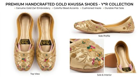 Women Handmade Khussa – Golden Thread Embroidered Flat Shoes – Bridal & Festive Wear