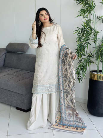 Salitex 3 Piece UNSTITCHED EMBROIDERED LUXURY COTTEL Suit for Women
