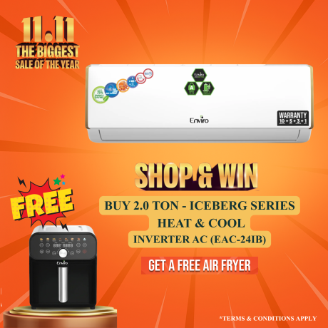 Enviro Ice Berg Series EAC 24IB 2 Ton DC Inverter Air Conditioner Heat and Cool Wi Fi Smart Control SmartLife App T3 Compressor Golden Fin Self Cleaning Turbo Cooling Energy Efficient R410 Eco Friendly Gas 10 Year Warranty