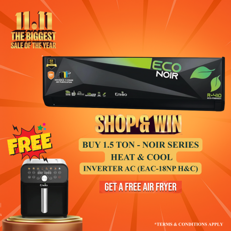 Enviro 1.5 Ton Inverter AC 75 Percent Energy Saving EAC 18NP H and C Advance 4 Stage Air Purification with UV Sterilization WiFi Compatible Turbo Cooling T3 Compressor Auto Restart R410 Eco Friendly Gas 10 Year Warranty