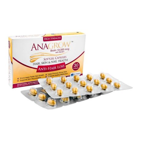 Jenpharm Anagrow Soft Gel Capsules | Anti Hair Fall | Biotin 10,000 mcg