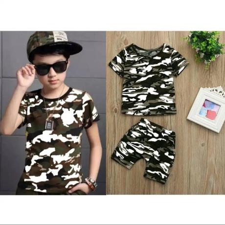 T Shirt And Shorts For Kids, Baby Boy Round Neck Short Sleeves Tee Tops Cloths Sets Dresses Outfit Commando And Camouflage Design