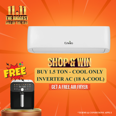 Enviro EAC-18A 1.5 Ton Inverter AC – DC Inverter Split AC, Turbo Cooling, Energy Saving, R32 Refrigerant, Golden Fin, Quiet and Sleep Mode, Best Home Cooling, 10 Years Compressor Warranty, White Color, Installation Service Available