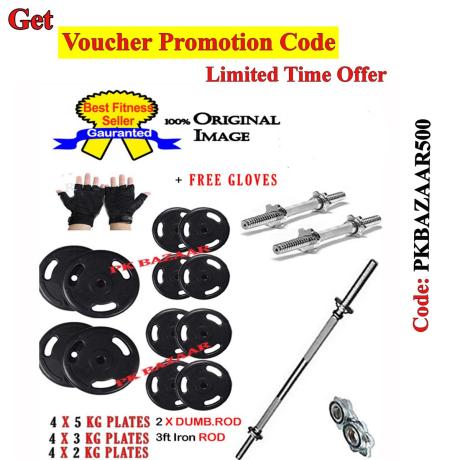 6 in 1 Set of 22kg 30kg 45kg Rubber Coated Plates Dumbells Weight Plates 3ft Rod Bicep Tricep 2 Dumbbell rods Collars + Free Gym Gloves Home Gym Equipment