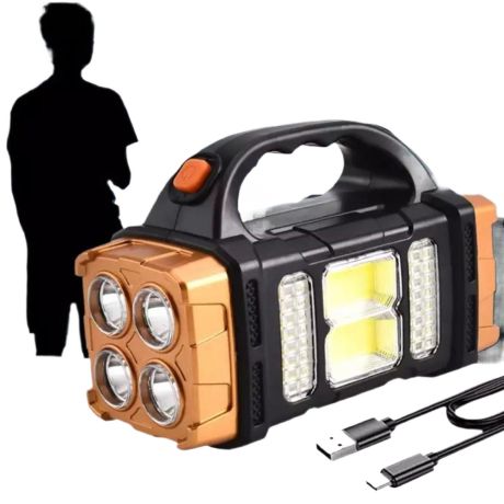 Dual Sided Powerful Solar LED Flashlight With COB Work Lights USB Rechargeable Handheld 4 Lighting Modes Outdoor Solar Torch Light