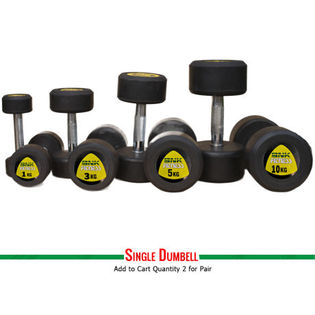 Rubber Dumbbells in Solid Rubber and Solid Steel Rod ( Single Piece )