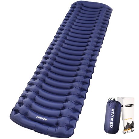 INVOKER Ultralight Inflatable Camping Sleeping Pad - Mat with Built-in Foot Pump, Lightweight 18.3OZ Compact Air Mattress, Best Sleeping Pads for Backpacking Travel Hiking Beach (Navy Blue)