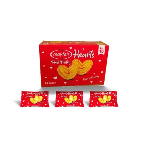 Heart-Shaped Puff Pastry Cookies - 24 Pack | Crispy Sweet Snacks for Tea Time, Gifts, Parties | Baked Treats (Rs. 10 Per Pack)