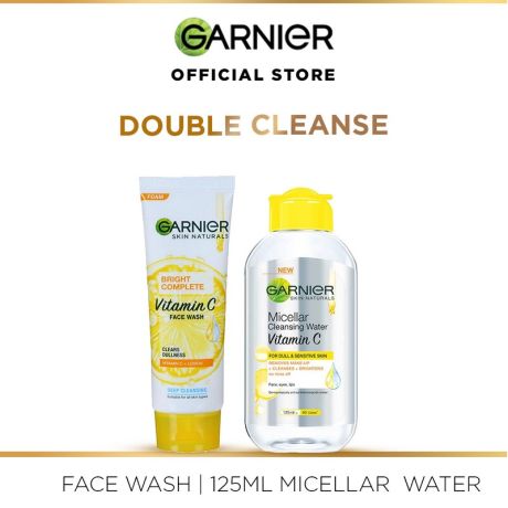 Garnier Skin Active Bright Complete Face Wash 100ml + Vitamin C Micellar Makeup Cleansing Water 125 ml