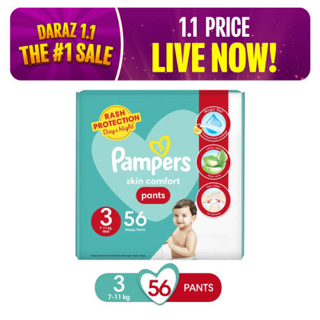 Pampers Pants Baby Diapers (Size 3 Medium, 56 Pcs)