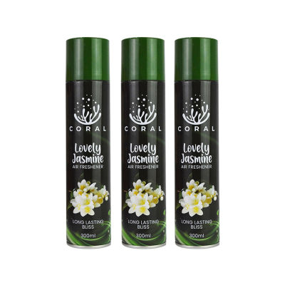 Coral Air Freshener Lovely Jasmine Pack Of 3 - 300ML Big Bottle Car, Home, Office Spray