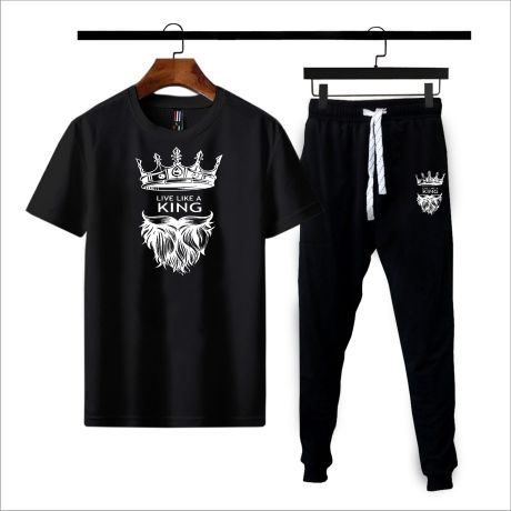 Black Live like a king printed summer gymwear trackuit trouser & t-shirt for men and boys